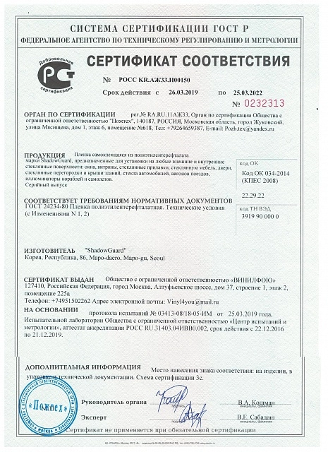 | Толщина пленки | 1.5 mil |